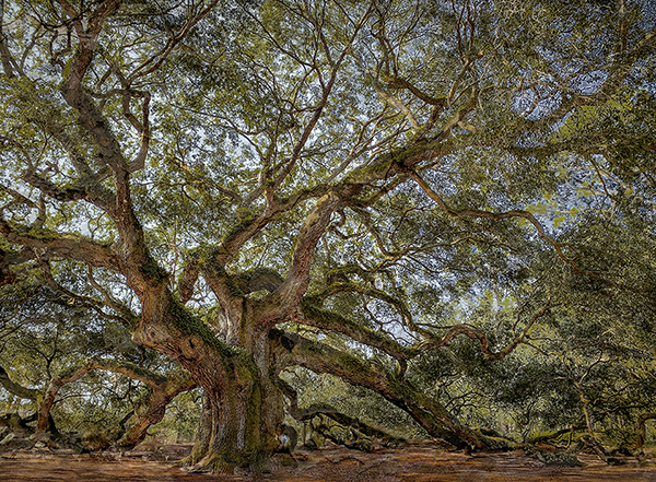 The next morning I skipped the conference’s keynote address so I could photograph the Angel Tree. Whether 400-500 or 1500 years old (experts disagree), it’s unquestionably a very old and beautiful live oak on Johns Island, just outside of Charleston. Some say it’s the oldest living tree east of the Rockies.