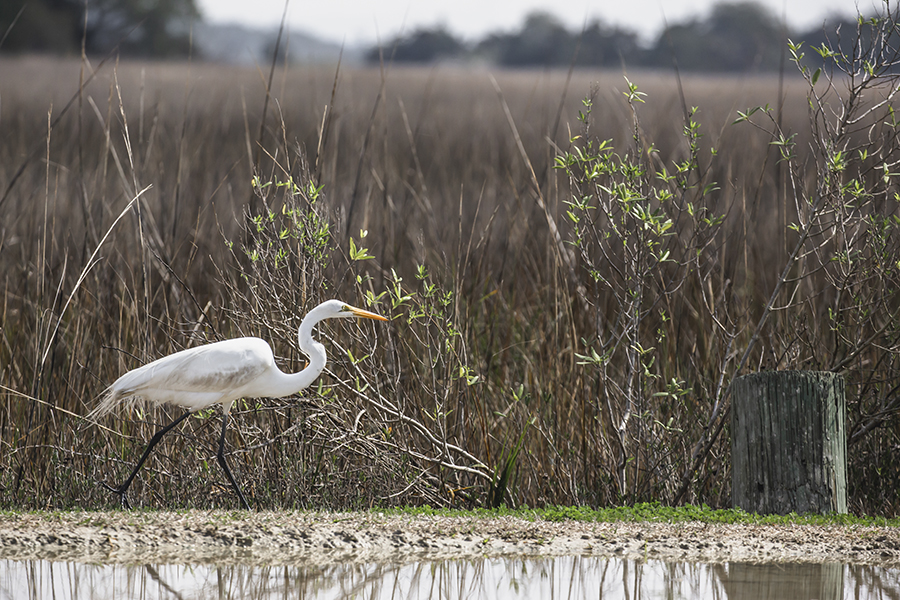 When driving over the bridge back to the mainland, there’s a great view of the low country marshes, but again, no place to pull over and photograph. I turned around and found a road leading under the bridge to a boat ramp.